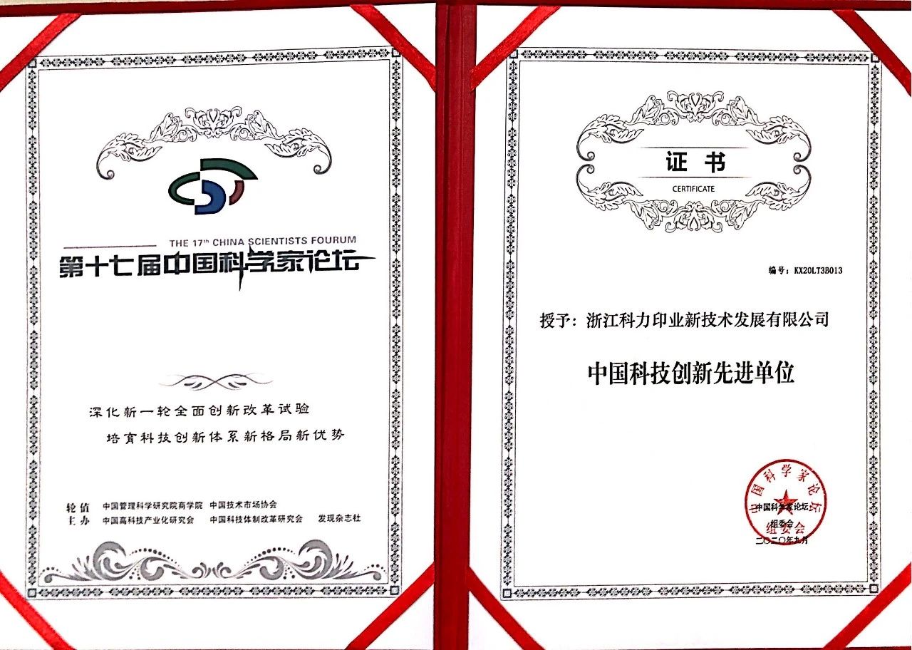 中国科学家论坛创办于2002年,在推动科技创新、促进产学合作等方面发挥了重要作用,是推动我国创新驱动发展的重要平台。科学技术部原副部长刘燕华在第十七届论坛上致辞:“新一轮科技革命和产业变革加速,人工智能、大数据、互联网、新技术、新业态方兴未艾??蒲Ъ际跏堑谝簧?,创新是引领发展第一动力,科学和成果可以造成人类推进创新作用,从来没有像今天这样重要”。通过十七届论坛与各位专家们的综合评审,浙江科力印业新技术发展有限公司荣获了“中国科技创新优秀发明成果奖”和“中国科技创新先进单位”两项殊荣。