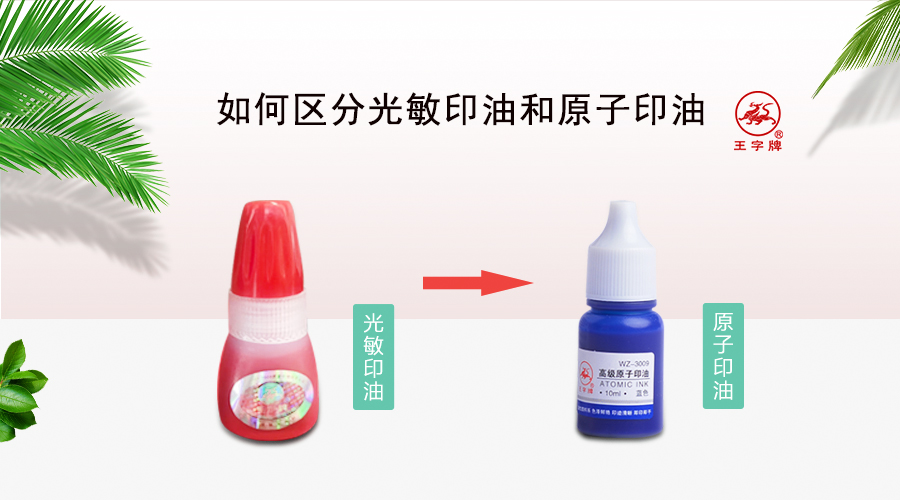 一般来说印章有两种印油,分别是光敏印油和原子印油。它们两种无论在印章选择,物质成份或者产品特性等方面都有很大的区别。